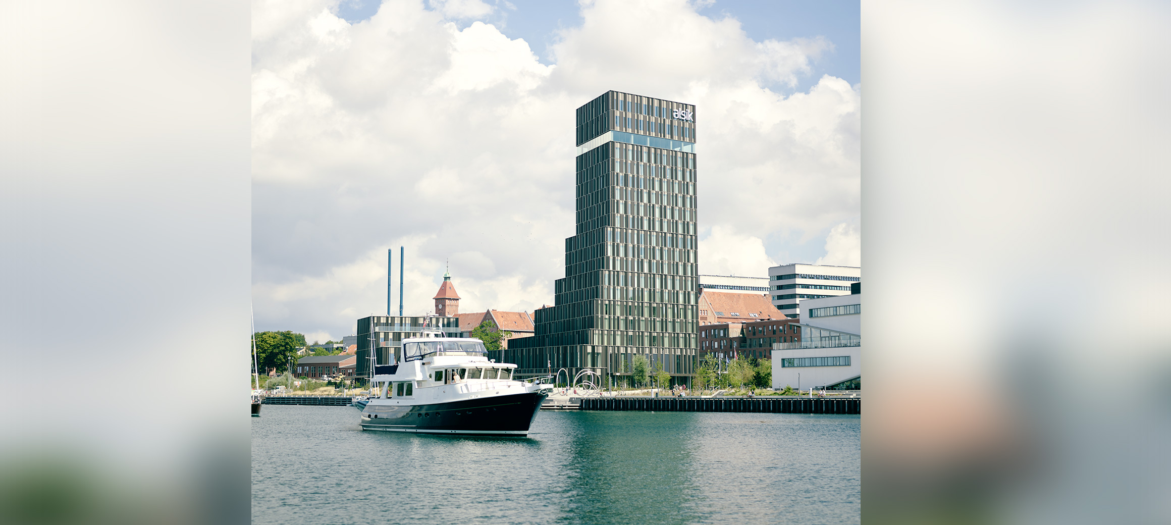 Alsik 酒店于 2019 年 5 月开业,为拥有丰富民间传统文化的阿尔斯地区及森讷堡小镇增添了新的魅力。酒店的 16 层有一个公共观景平台,客人可以在这里欣赏前工业港口以及位于德国和丹麦边境处的弗伦斯堡湾全貌。酒店凭借其独特的建筑外观和装修设计风格吸引了大量顾客光临,并承办接待了各种大型会议和活动。这座 70 米高的酒店共 19 层,总面积为 24800 平方米,是一处滨水时尚新地标。