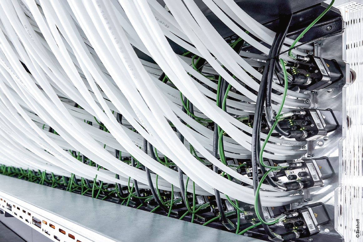 TwinCAT 以 1 毫秒的周期时间精确计算实现所需纱线张力所需的电机电流或扭矩。“为确保实现如此短的控制周期,我们将数量庞大的步进电机以及其它任务分配至 C6032 超紧凑型工业 PC 的八个处理器核心和多个 EtherCAT 网段。”Jens Hülsebusch 解释道。每个以太网接口分别将 100 个驱控一体步进电机连接至工业 PC。第五个分接点连接其余的 EtherCAT 端子模块、EP 端子盒以及用于控制簇绒机其它驱动单元的 AX5000 紧凑型伺服驱动器。数控部分、可视化界面及快慢速工艺进程分别分配给另外的 CPU 核心。“在此应用中,我们充分发挥了基于 PC 的控制技术的灵活性和工业 PC 的性能优势。”Jens Hülsebusch 总结道。