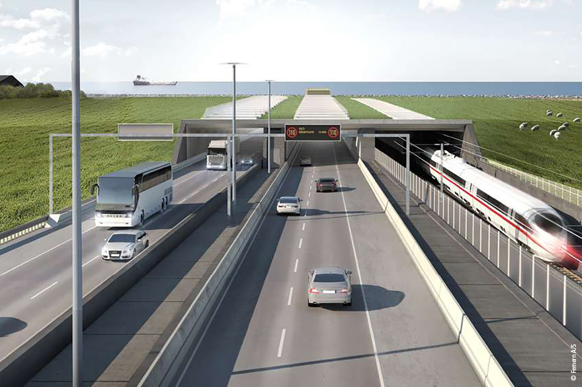费马恩海底隧道采用与丹麦和瑞典之间厄勒海峡大桥相同的沉管隧道技术进行建造。该项目需要使用 79 个标准管节和 10 个特殊管节建设隧道基础设施。制作管节时,首先将钢筋连接成笼状结构,并推入预制模板中。随后在浇筑车间内进行混凝土浇筑。待混凝土充分硬化后,部分拆除模板,将首段 24 米长的管节移出,为下一个钢筋笼腾出空间。