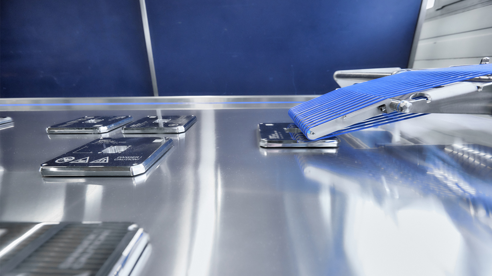 According to Gerd Stratenwerth, Sales Manager Slicing at Provisur, the Formax FMS significantly reduces the space required compared to conventional systems. At the heart of the system is a handling and buffering system built from 48 XPlanar tiles and a flexible number of XPlanar movers. Through its modularity, XPlanar optimally supports the FMS concept as an individually adaptable standard machine. With the control technology placed underneath the stainless-steel worktop to save space and maximize functional reliability, the result is a particularly compact design – especially since the additional modules otherwise required, such as the turning station, buffer, inliner, and overlapper, are no longer required. The core task of the FMS is to buffer products for the downstream packaging machine to ensure a continuous supply during the slicer’s loading pause. In conventional lines, this task is solved with belt systems, which require more space and cleaning effort. The FMS can also be used to perform tasks such as turning portions or else merging or distributing product streams.