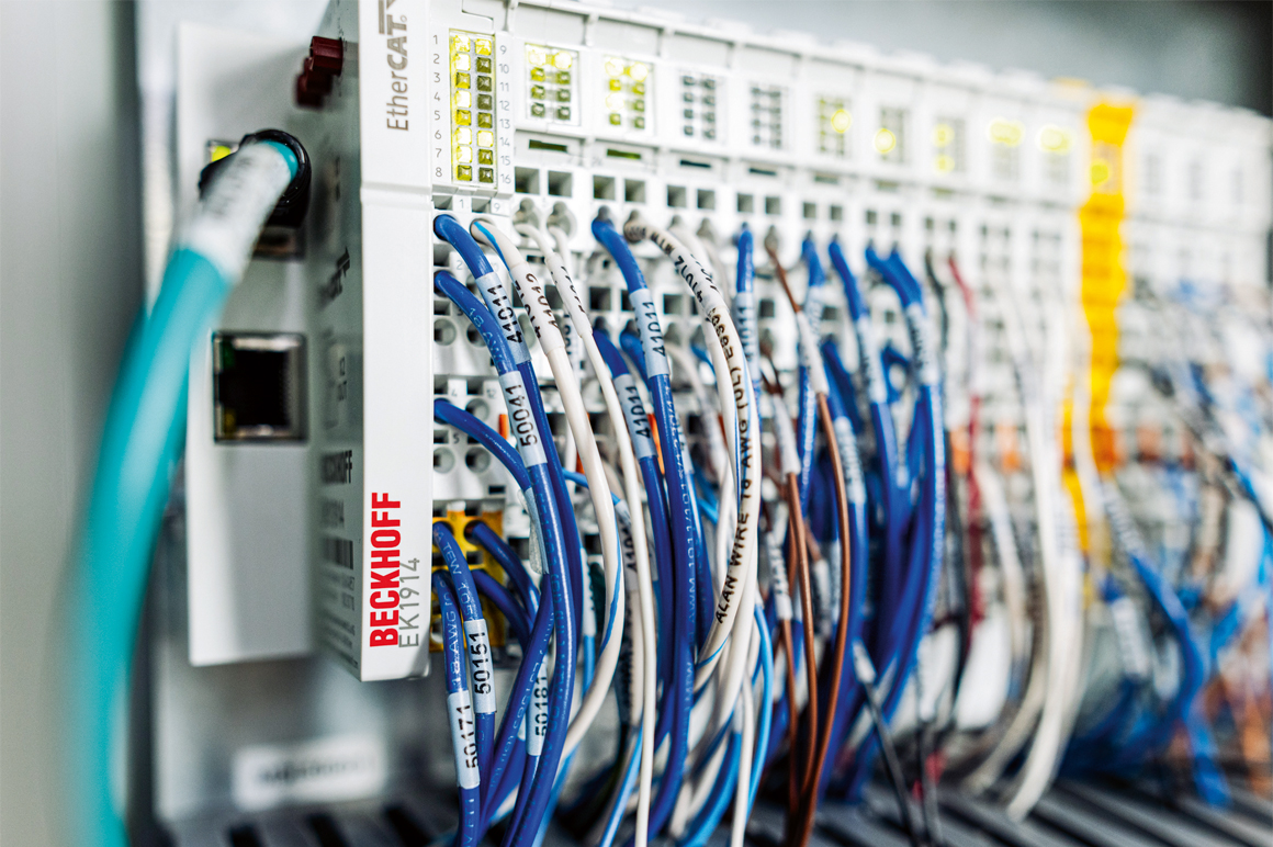 在 CMD 公司高动态运动控制应用中,EtherCAT 凭借其出色的同步性能,进一步释放了倍福驱动解决方案的性能潜力。该设备配备了 AX8000 多轴伺服系统和 AM8000 伺服电机,实现十四轴联动控制。“AX8000 驱动器在输出功率与超紧凑设计之间实现了平衡。”CMD 电气工程师 Jason Plutz 说道。“通过采用集成式安全扭矩关断功能,我们成功省去了两个大体积的接触器,显著节省了面板空间。”