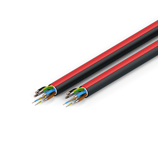 ZB7307-xxxx | EtherCAT P cable, no overall shield, PUR, drag-chain suitable, (3G2.5 mm² + 2 x 2.5 mm² + (1 x 4 x AWG22)), black with red stripe, OD = 12.5 (±0.4 mm)