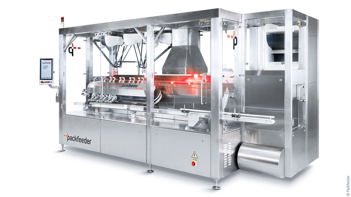 While increasing the operating speed of each robot was an important objective of the development project, the main focus was on the ability to switch formats automatically. “The daily operations of our partners and customers demand maximum machine flexibility in order to accommodate the endless container variations in terms of geometries, colors, materials, textures and refinements,” Ferran Martínez explains. “The successful launch of the Pickfeeder series has met the expectations of our customers with the additional benefit of optimizing the relationship between throughput rate and floor space requirements.” For example, the Pickfeeder Single 100, the smallest model with only a single robot, achieves an output rate of more than 120 bottles per minute. That’s a great improvement over conventional systems with 70 to 80 bottles per minute, says Martínez.
