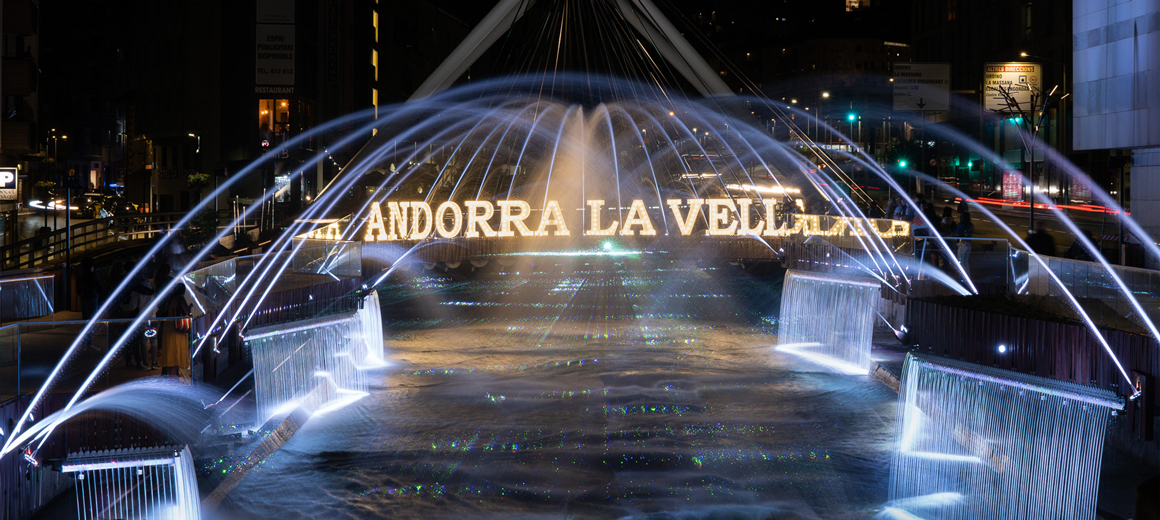 色彩之泉(Font dels Colors)水景景观由 Fluidra 公司与 Pere Cervós Arquitectura 建筑事务所的 Pere Cervós、Causa Estudi 建筑事务所的 Ricard de Deus 两位建筑师,以及建筑公司 Locub S.A. 携手打造。该装置将令人惊叹的喷泉水景与灯光、音乐巧妙融合于一体,坐落于安道尔老城中心格兰瓦利拉河畔的巴黎桥旁。这一景观将城市步道化身为一件鲜活的艺术品,令游客沉醉其中。该项目的另一大特色是其采用可持续发展的创新方案,即瀑布用水取自河流,而后再循环利用。