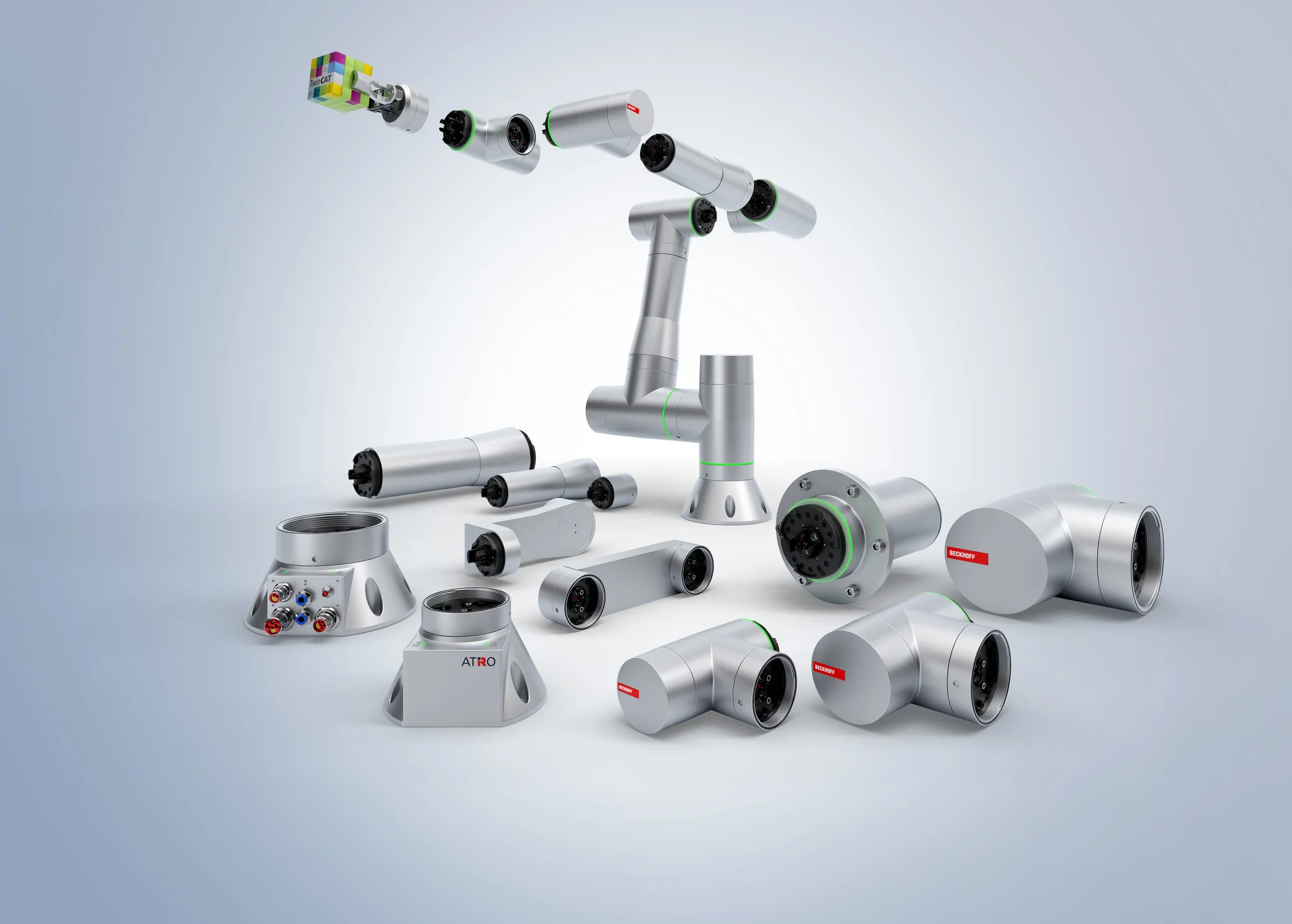 ATRO 模块化工业机器人系统支持个性化的灵活配置,可针对各类装配与搬运应用需求打造最优的机器人解决方案。集成驱动功能的标准电机模块,与各种形状设计和长度的连接模块配合使用,可以实现近乎无限的机械组合。通过与倍福 TwinCAT 控制平台的全面集成,用户还能够直接使用设备控制、机器人控制、安全功能、机器视觉、状态监测及边缘设备/云端连接等一系列成熟的自动化功能。ATRO 系统采用了从硬件模块到配置、编程、运行及安全监测软件的端到端模块化设计理念,为用户带来了前所未有的灵活性。