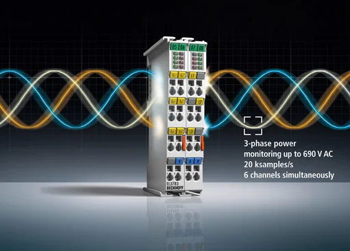 Conventional automation and power measurement technology are increasingly converging. With the integration of the new Beckhoff EL3783 oversampling terminal for power monitoring into standard control systems, high-precision grid analysis becomes available for power-generating systems. Most importantly, 3-phase AC voltage systems up to 690 V can be analysed simultaneously on six channels and with 20 ksamples/s directly in the PLC.