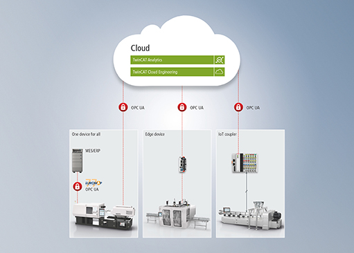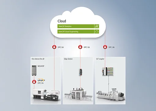 基于 PC 的控制技术,即倍福基于 PC 和 EtherCAT 的控制与驱动技术,为提升塑料加工设备和系统的可持续性提供了巨大潜力。软件基于 TwinCAT 3 Plastic Framework、TwinCAT Analytics 数据分析解决方案和基于 TwinCAT OPC UA 通信协议的 Euromap 标准。在硬件方面,例如,用于能源监测的 EtherCAT 端子模块和伺服电机、驱动作为液压方案的替代方案,发挥了至关重要的作用。