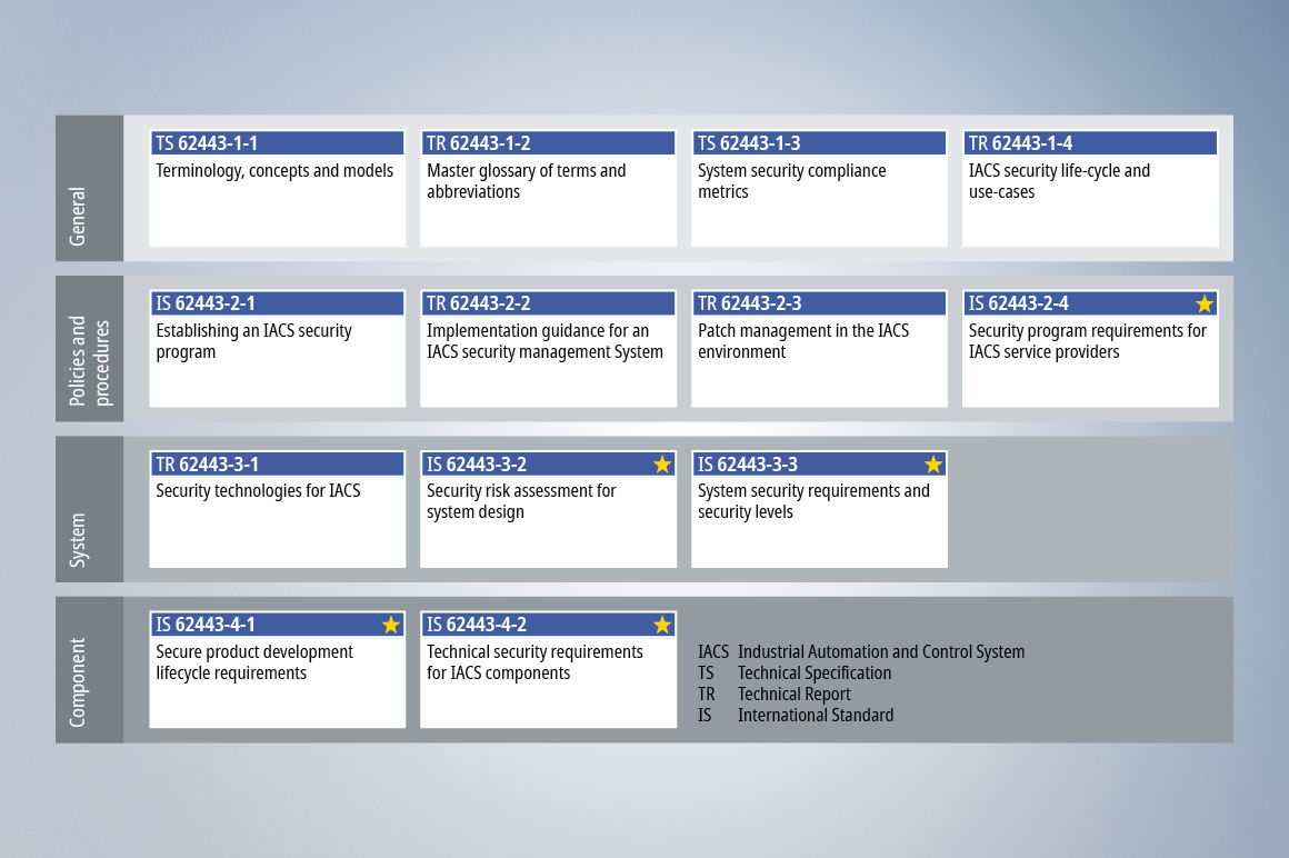 The following parts are particularly important to the technical implementation of IEC 62443: