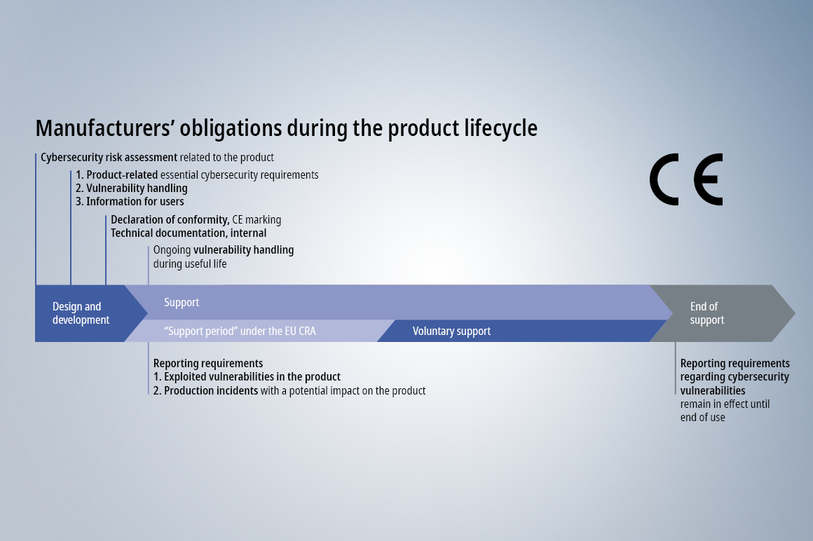 The regulatory landscape had another regulation introduced to it in December 2024: Regulation 2024/2847/EU on cyber resilience – better known as the Cyber Resilience Act or CRA for short. The CRA contains requirements for product design, development and warranties. It intends for organizations to introduce vulnerability management for the entire product life cycle, sets out strict reporting obligations in the event of cyber incidents, and imposes severe penalties for any breaches.