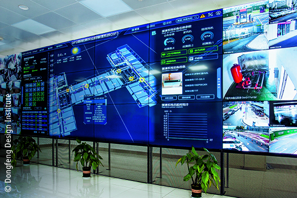 建筑面积为 82000 m2 的东风院 H 栋项目是武汉市经济技术开发区的地标性建筑。大楼采用 H 型设计造型,可以最大限度地利用自然光照明。屋顶搭建光伏电站,年发电量超过 20 万度,基本满足大楼的照明年用电量。屋顶上有一个 300 立方米的雨水收集装置,它提供的循环水可以用于大楼清洁和绿植浇灌, 最大限度地减少了清洁水和能源的消耗。所有这些设备均接入倍福的自动化控制系统,保障设备的可靠运行。