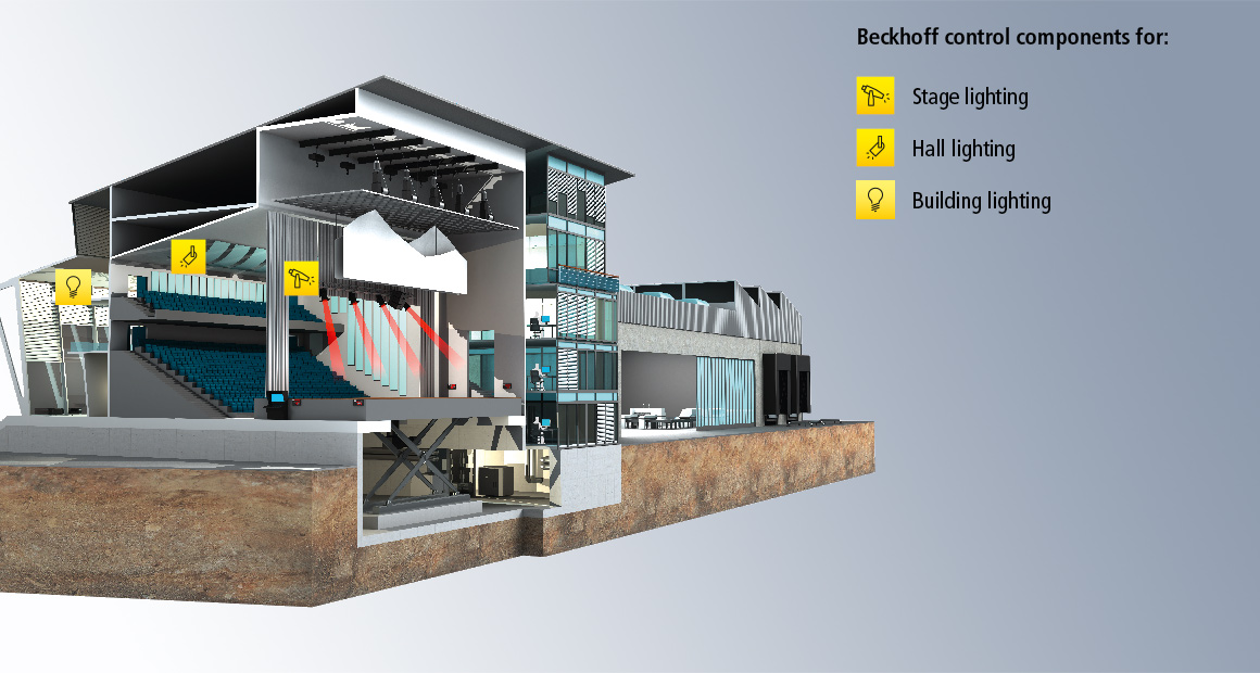 无论是剧场还是歌剧院,无论是音乐厅还是音乐剧院,无论是会议中心还是大型邮轮:倍福基于 PC 的控制解决方案可以将所有固定舞台演出系统集成在同一个平台中。集成式控制技术可显著提升可移动装置(舞台机械、链式升降装置、绞盘、动力学装置和动画人物)、照明技术(舞台灯光、灯光效果、大厅和楼宇照明)、视听多媒体技术(音频和视频装置、舞台监督台、互动效果和舞台水特效)以及楼宇自动化(照明、操作和监控、暖通空调、幕墙控制和能源数据采集)的性能。基于 PC 的控制技术已经在全球固定舞台技术所有领域得到广泛应用,这也很好地说明了倍福拥有深厚的行业专业知识。