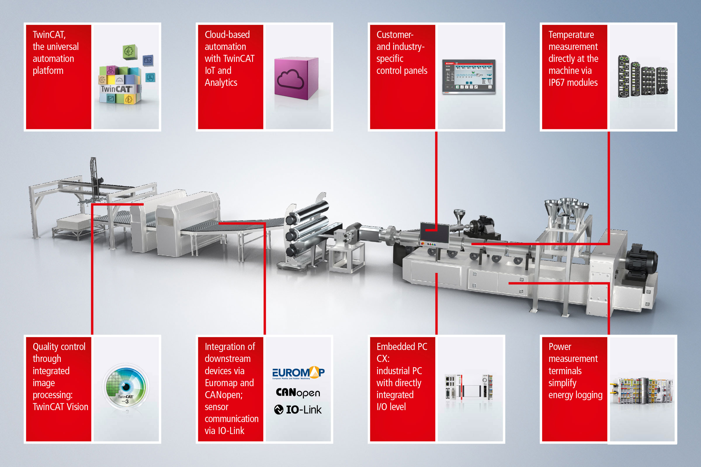 基于 PC 的控制系统可以作为通用开发平台,用于集成下游自动化功能的挤出机