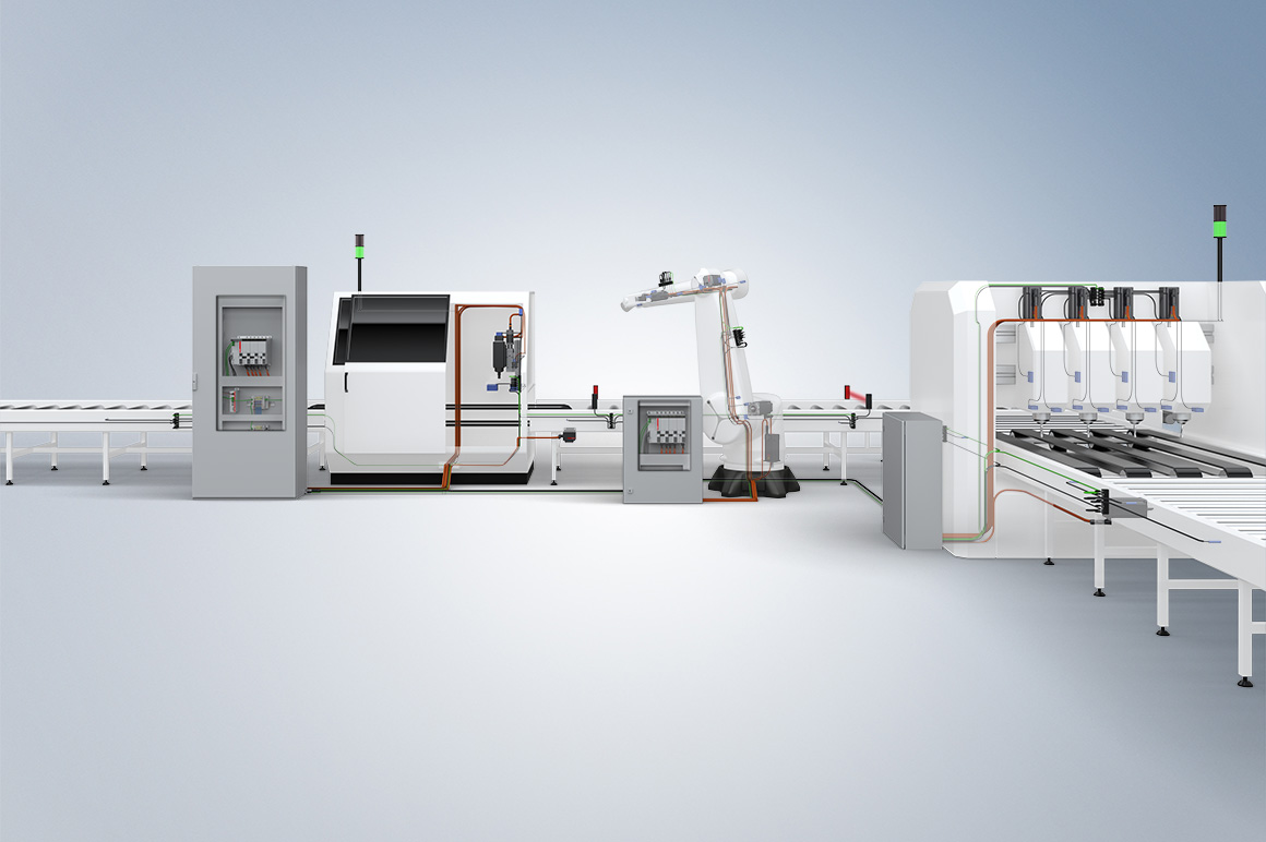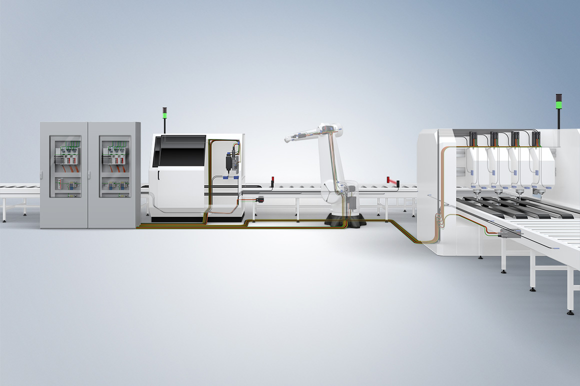 在设有中央控制柜的系统中,布线工作要求很高,而使用 OCA 技术和多功能混合电缆可以显著降低布线要求。分散布置的连接点可以直接迁移到系统的各个设备中,因此完全无需使用控制柜。这种面向未来的技术方案非常适合用于实现数据和电力电缆的分配以及传感器和执行器的连接,具有节省空间、结构清晰且易于管理和维护的优点。
