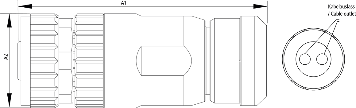 Max. cable outer diameterCable outlet 2 x 2: 1.0 - 3.0 mm / Ø 4.0 - 5.0 mm