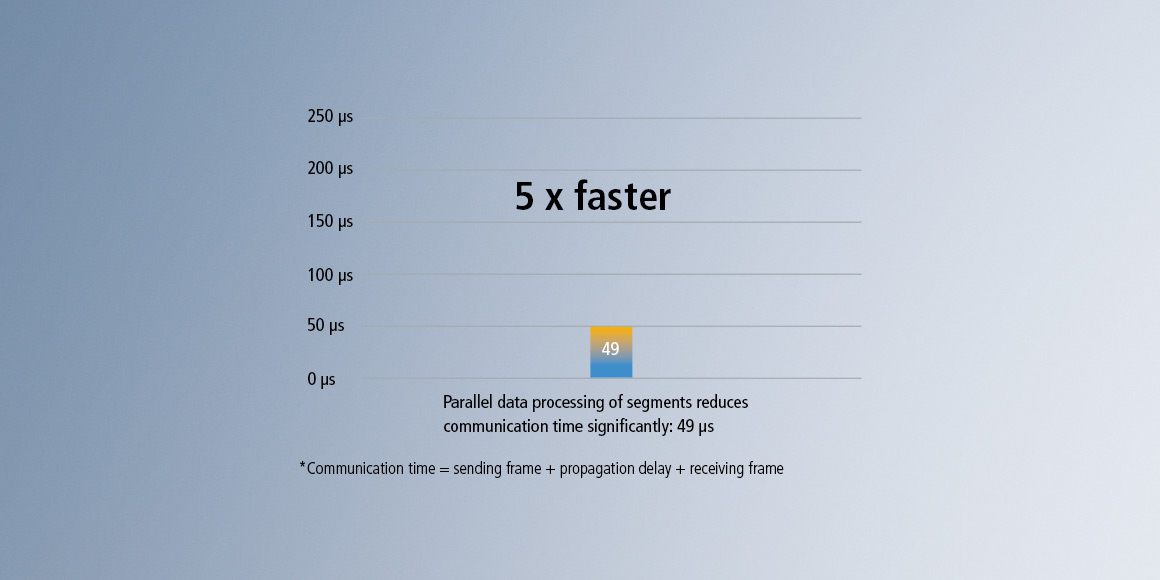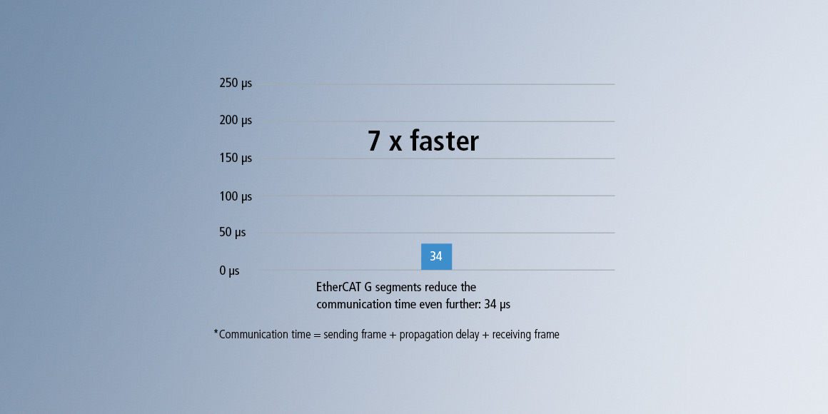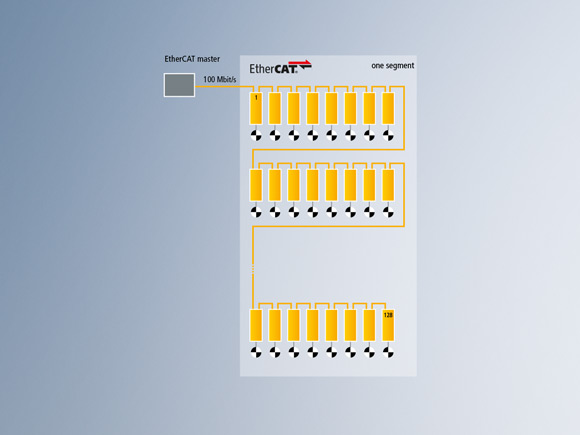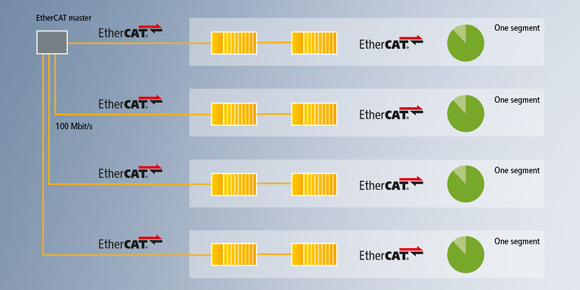 EtherCAT 技术的出色性能满足了几乎所有行业用户对工业通信的各类需求 — 从高动态机床、复杂的包装系统,到物流中心。机器视觉、状态监测与类似 XTS 及 XPlanar 的创新传输系统都依赖于可靠地将每个节点每个循环产生的几百字节的过程数据进行传输,而这要求循环时间小于等于 1 微秒及高数据带宽。采用 EtherCAT G,诸如上述系统和应用仅需一台 EtherCAT G 主站控制,并同时与其他自动化设备和驱动器进行协同。为 EtherCAT G 开发的最新分支控制器模式可以满足日益增长的对集成大量设备的扩展系统的更短循环周期的需求。如今,即使是更大型的系统也可由一个中央主站进行同步和运行。