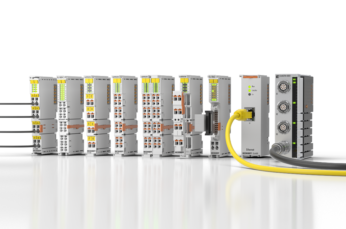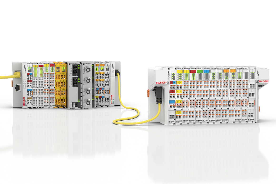 坚固的外壳、安全可靠的触点和性能稳定的电子元件是倍福公司组件的显著特点。一个 I/O 站由一个 EtherCAT 耦合器和几乎任何数量的端子模块构成。EtherCAT 系统最多可连接 65,535 台设备,因此整个网络规模几乎是无限的。