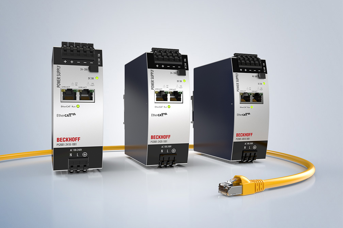 带 EtherCAT 接口的电源产品将倍福高性能电源模块与超高速 EtherCAT 通信标准融合于一体。通过集成 EtherCAT 技术,控制器可以直接处理大量测量数据及电源内部数据。这样就可以通过远程访问和监测直流输出范围与交流输入范围直接作用于设备。设备内部参数值、状态位和错误信息可以通过 TwinCAT 自动化软件轻松方便地读取、配置和重置。
