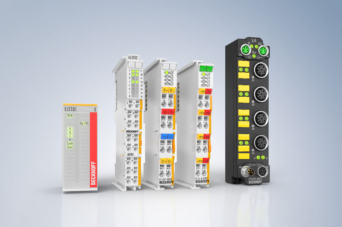 - 压力测量:EL6224 可用于带 IO-Link 接口的压力传感器,EJ3124-0090 端子模块可用于压力传感器(4...20 mA)