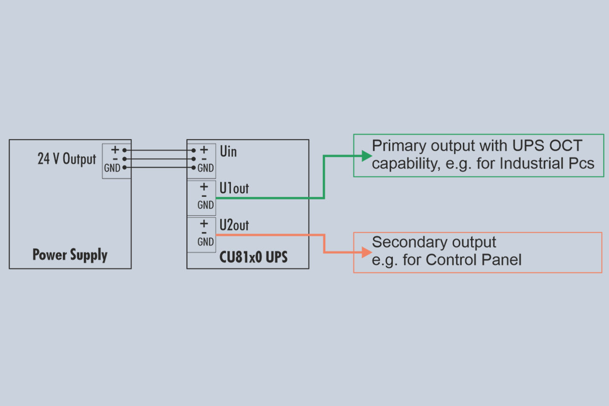 倍福所有控制组件,特别是工业 PC、面板型 PC 和嵌入式控制器都可以配备 CU81xx 系列不间断电源(UPS)组件。如果外接的 24 V DC 输入电压丢失,UPS 将凭借其稳压和缓冲的 24 V DC 不间断输出电压,自动接管所连接设备的供电。