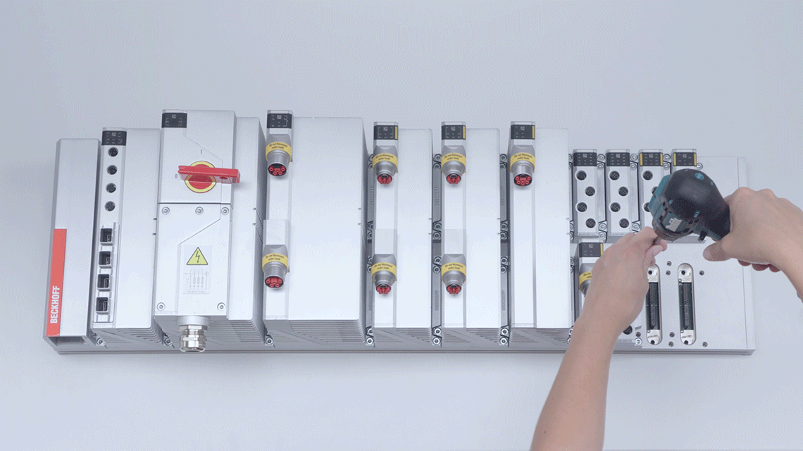它们通过标准化连接器实现供电以及通信和诊断。这意味着每个功能模块在连接底板时都会自动连接 EtherCAT。每个模块都配备了 EtherCAT 接口,因此支持实现 MX-System 的热插拔和实时功能,以及每个功能模块的参数设置和诊断功能。